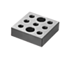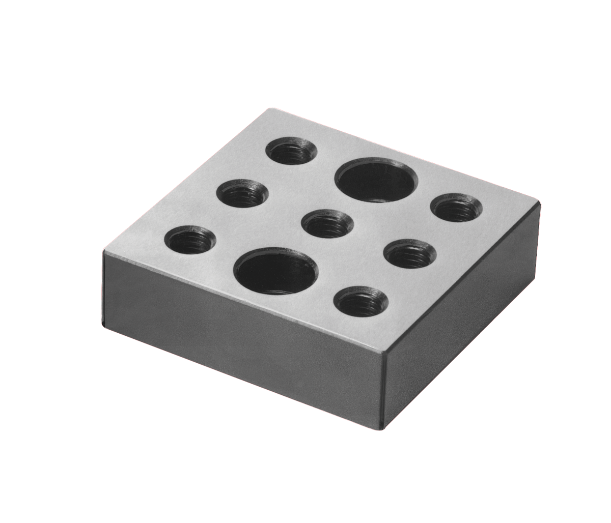 Riser blocks are used to achieve a certain support height. The additional tapped holes in the risers are for mounting further fixture elements.