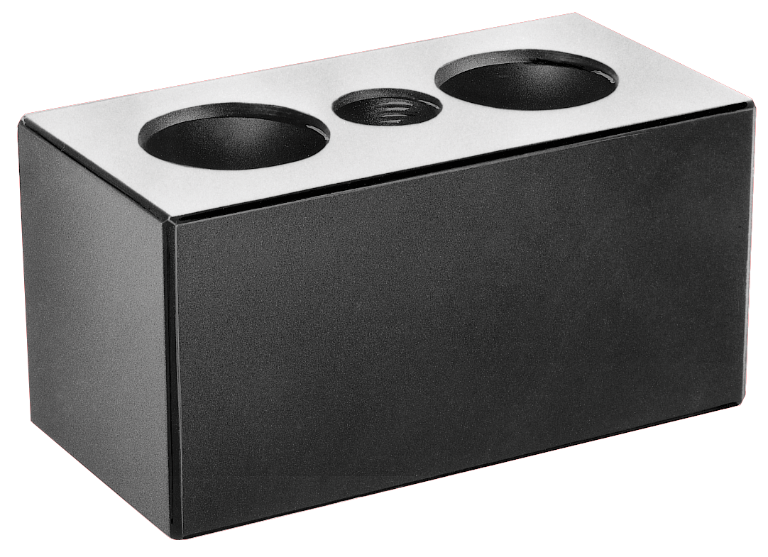 Support blocks are for placing under long workpieces to prevent bending during machining or clamping. The tapped hole is for mounting fixture elements between the grid holes.
