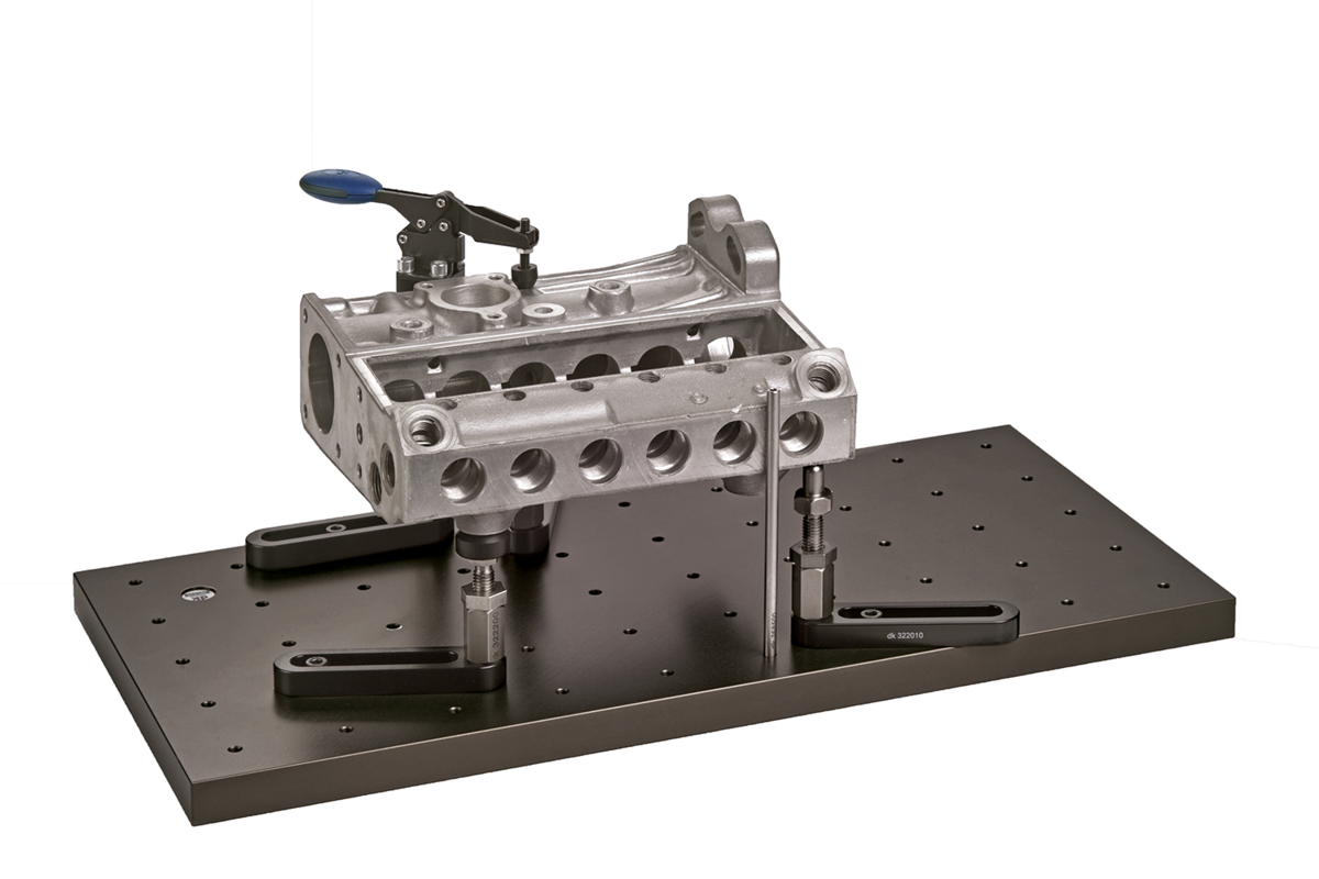 The supports can be combined with tapered, prism or flat attachments 02156-02 as required. The attachments are fastened using a grub screw. This enables the attachments to be exchanged quickly and easily and adapted to the corresponding workpiece.