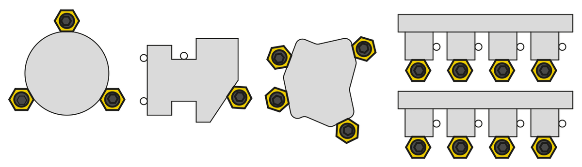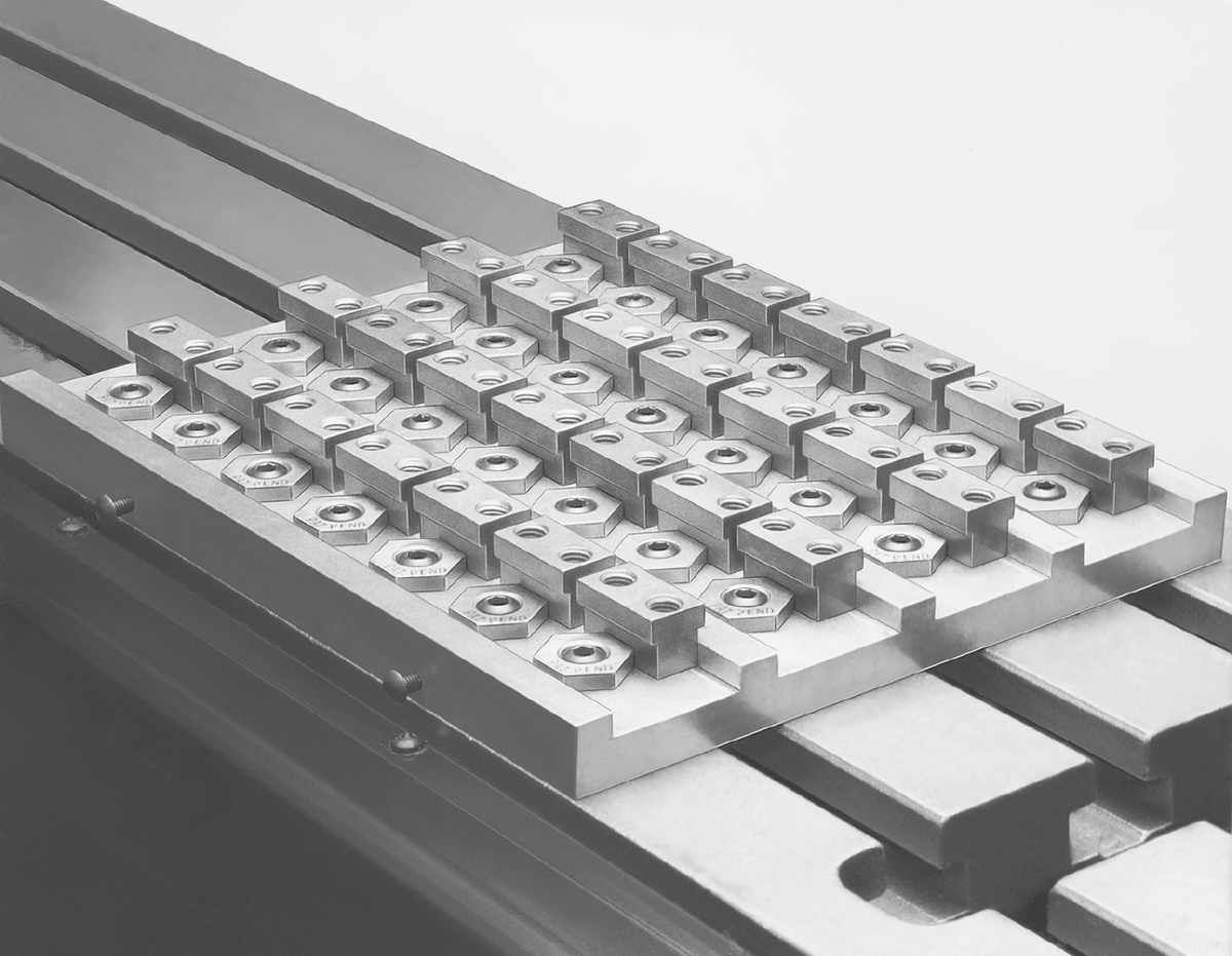 The minimal height of this fixture clamp enables numerous clamping problems in fixture and equipment construction to be solved. The brass hex washer offers a gentle yet extremely stable and safe clamping of workpieces. By using several fixture clamps entire pallets can be set-up.