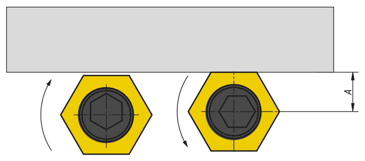 ”A” = distance from workpiece to screw centre (cam screw).