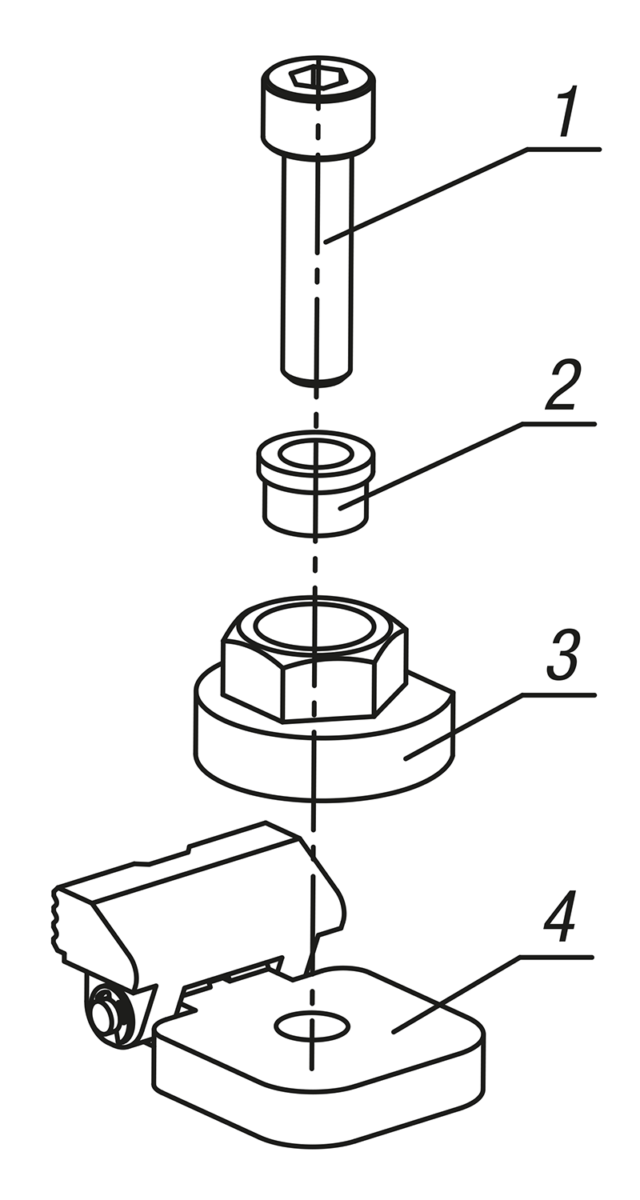 1. Screw the locking screw into the collar bush, fixture clamp and clamping unit and screw onto the baseplate.