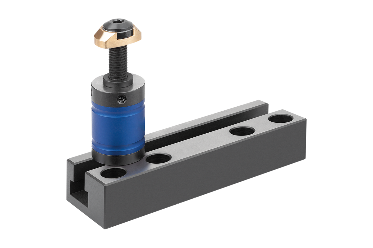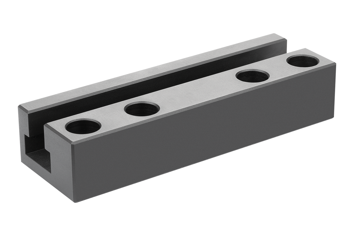 With 14 mm T-slot. Matches T-slot spacings of 63, 100 and 125 mm.