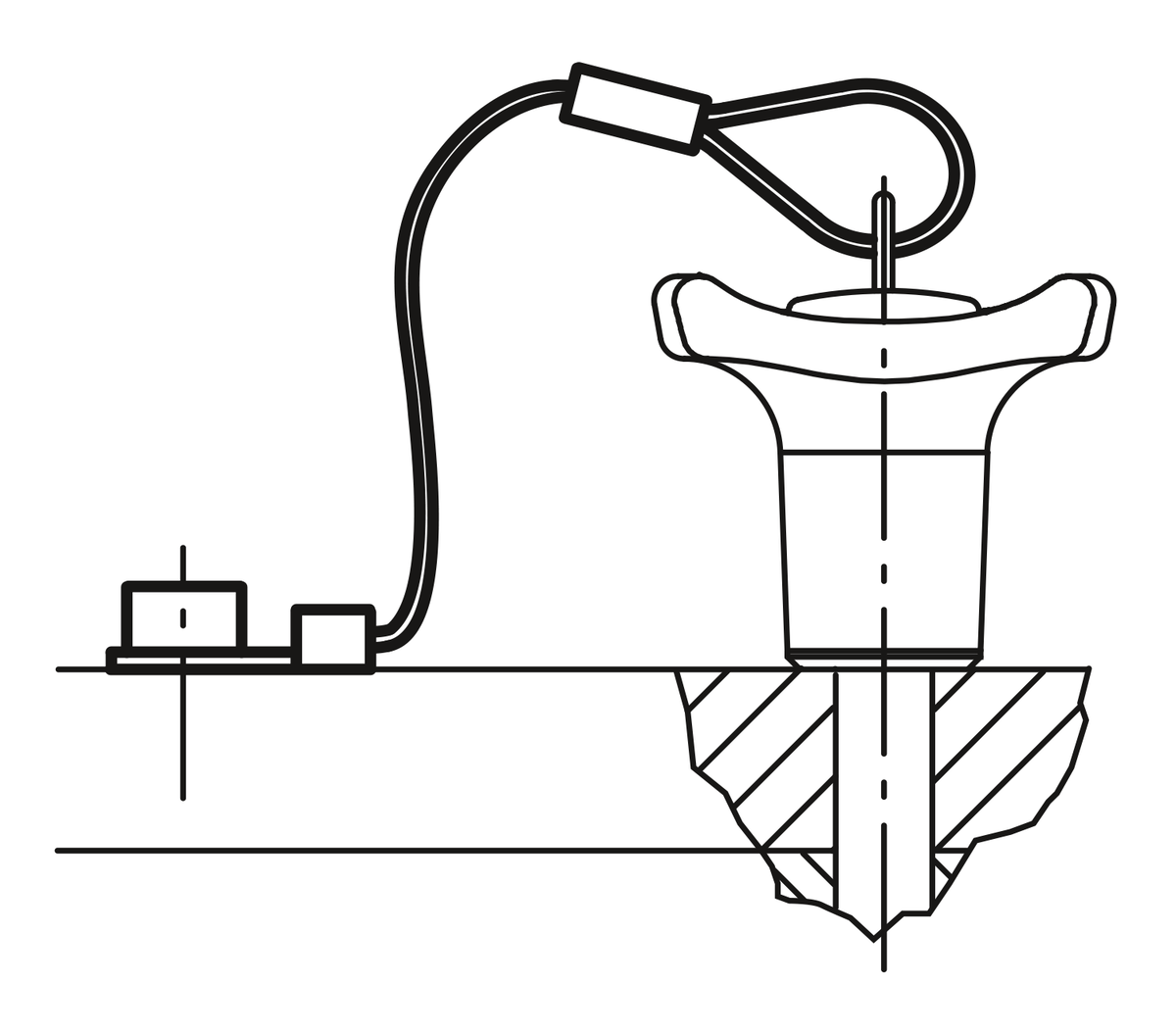 With the retaining cable and pin ring (03199) the ball lock pins (03193, 03194 and 03196) can be secured so that they cannot be lost. An M5 screw is used to secure the retaining cable.
