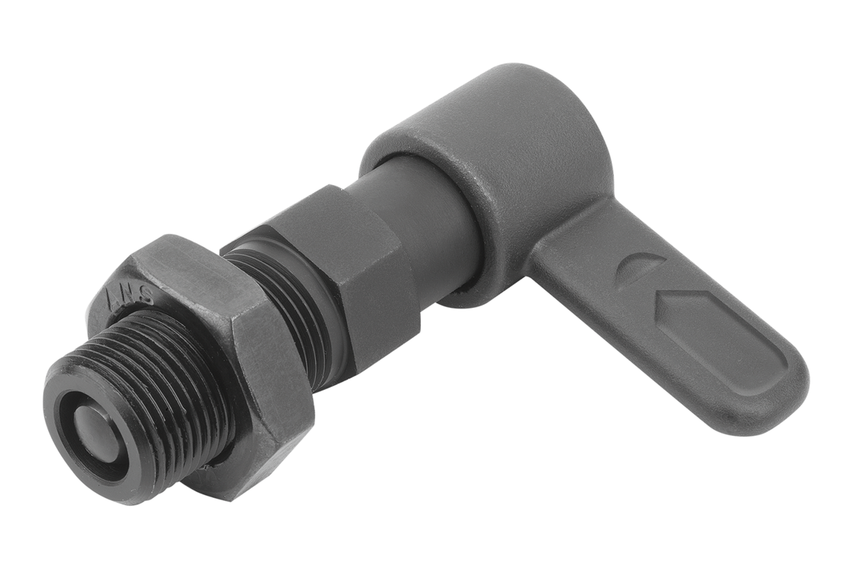 Cam-action indexing plungers are used where any change in locking position due to lateral forces should be prevented. Turning the grip through 180° retracts the indexing pin, enabling a change in the indexed position. The notch ensures that the grip remains in this position and the indexing pin remains retracted.