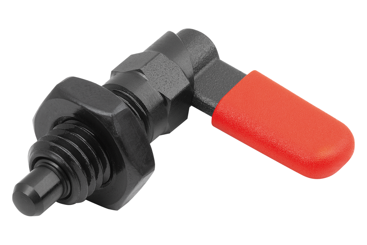 Cam-action indexing plunger are used where any change in locking position due to lateral forces should be prevented. Turning the grip through 180° retracts the indexing pin, enabling a change in the indexed position. The notch ensures that the grip remains in this position and the indexing pin remains retracted.