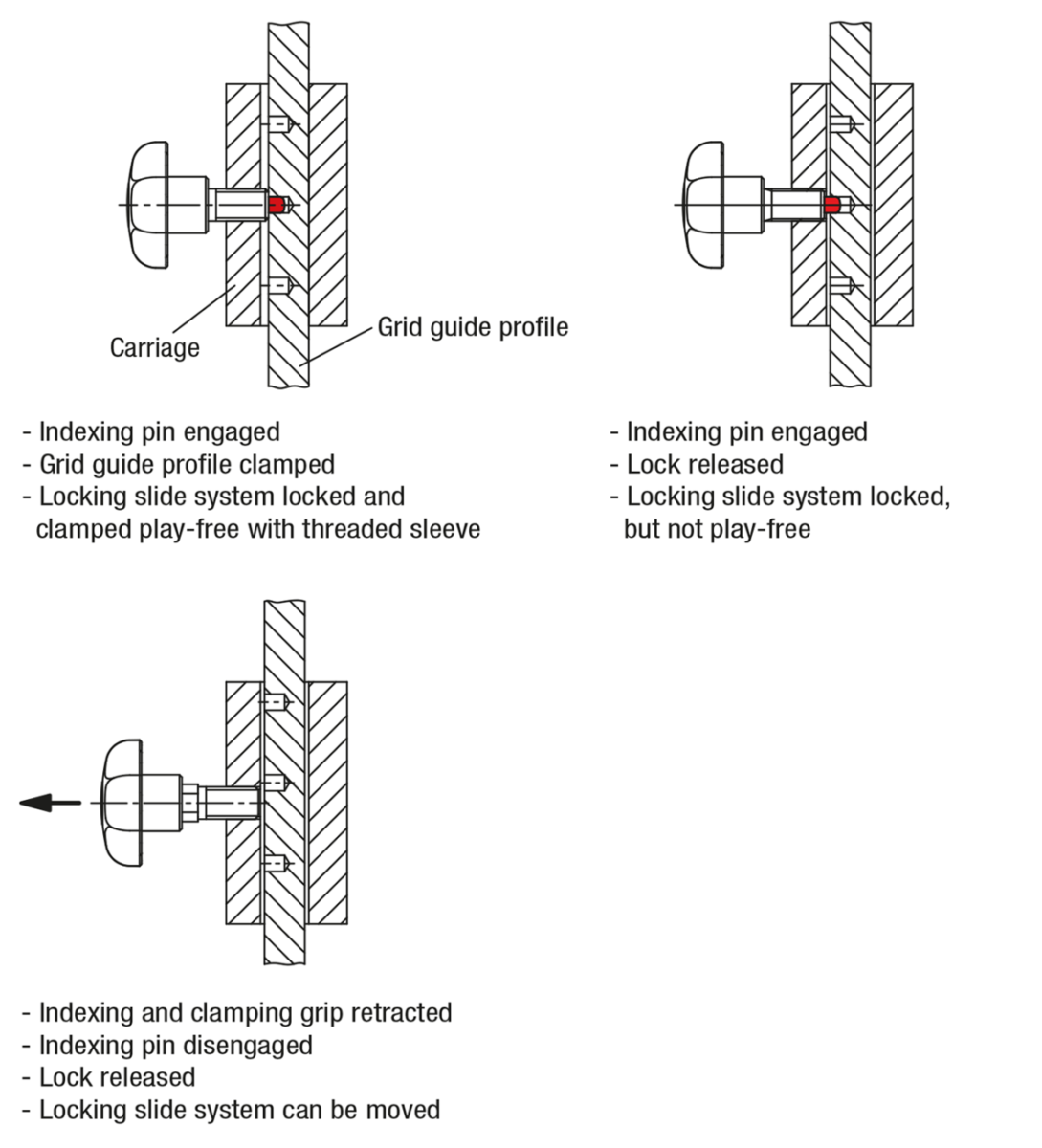 The indexing and clamping grips enable the positioning, securing and clamping of diverse positioning elements with just one product. Indexing is carried out using the indexing pin and the item is clamped using the end face of the sleeve.