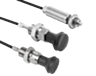 The indexing plunger is connected to the operator side by a Bowden cable. The combination of indexing plunger and actuating element forms a complete system which can be used for many types of application. Form D should be used for applications where the indexing pin should remain disengaged for an extended period and be prevented from springing back.