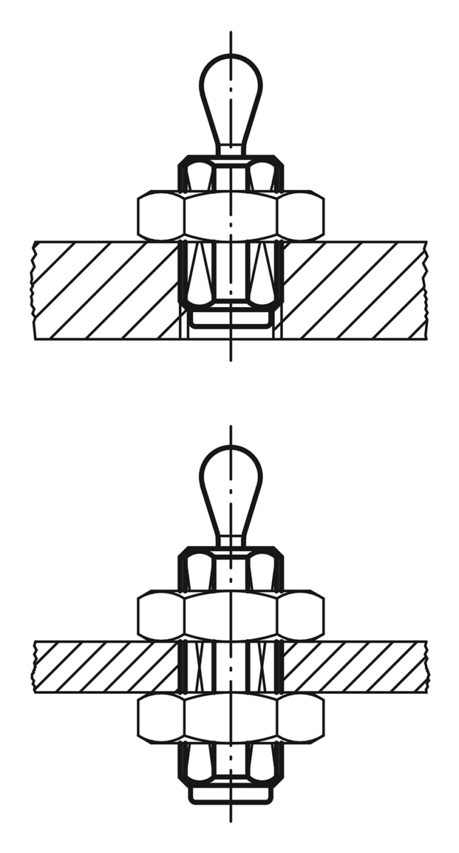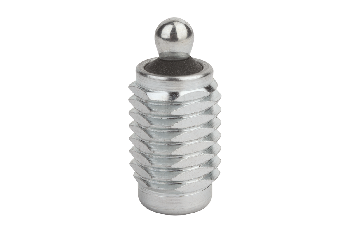 Lateral spring plungers with threaded sleeve can be individually adjusted to suit the the part being held. The threaded sleeve is also suitable for screwing into thin sheet metal as it can be fastened with one or two nuts.