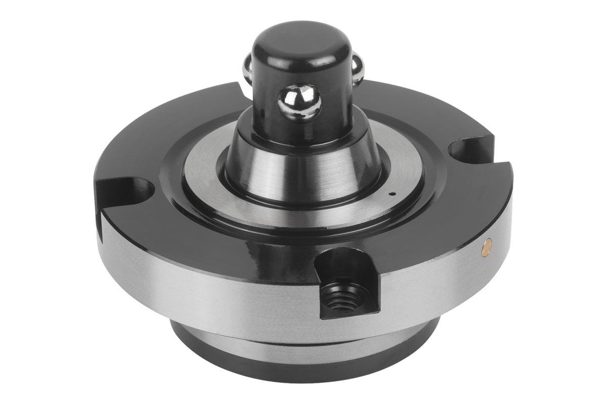 The 3 clamping balls are mechanically released through control of the locating cylinder with the ”opening” connection. The 3 clamping balls move inward and the fixture can be changed quickly. For clamping, the air is taken from the ”opening” connection and the ”clamping” connection then receives air on the locating cylinder. The 3 clamping balls are mechanically driven outward again and the new fixture is clamped.
