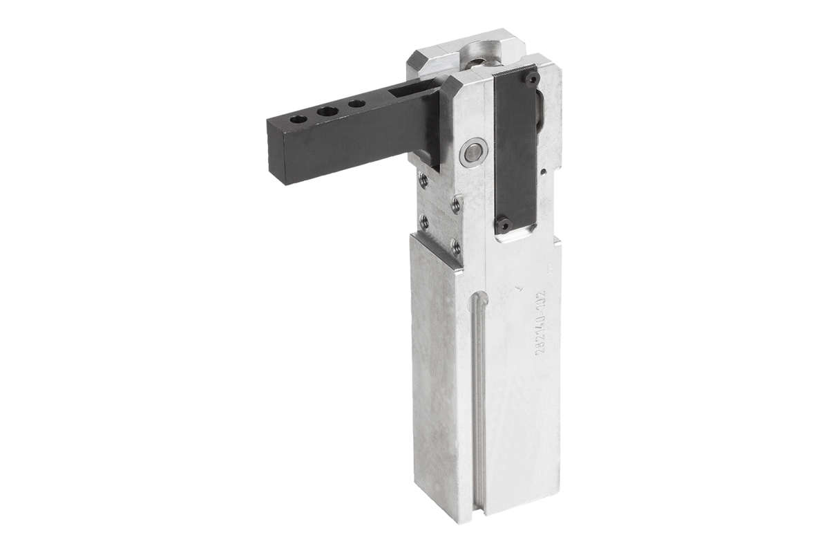 The mini clamp is characterised by its small dimensions, positioning accuracy of the clamping arm and light construction. Mini clamps are fully self-limiting. The clamping force is guaranteed even when the pressure is removed through the over dead-centre position of the toggle lever on the clamping arm. The permanent lubrication and special bearing bushings make the mini clamps maintenance-free. They can be operated using dry, oil-free air.