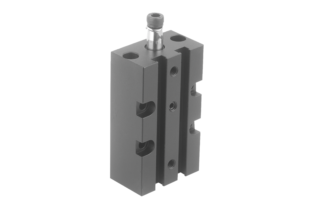 Swing clamps are used where low clamping forces suffice or where the clamping point must be free when mounting and removing the workpiece. The block form of the housing offers universal fastening possibilities. The magnetic piston is primed for electrical end position feedback.