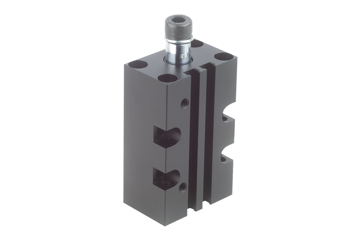 Swing clamps are used where low clamping forces suffice or where the clamping point must be free when mounting and removing the workpiece. The block form of the housing offers universal fastening possibilities. The magnetic piston is primed for electrical end position feedback.