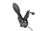The bracket is attached with the toggle clamp screws through holes between the foot and the mounting surface.