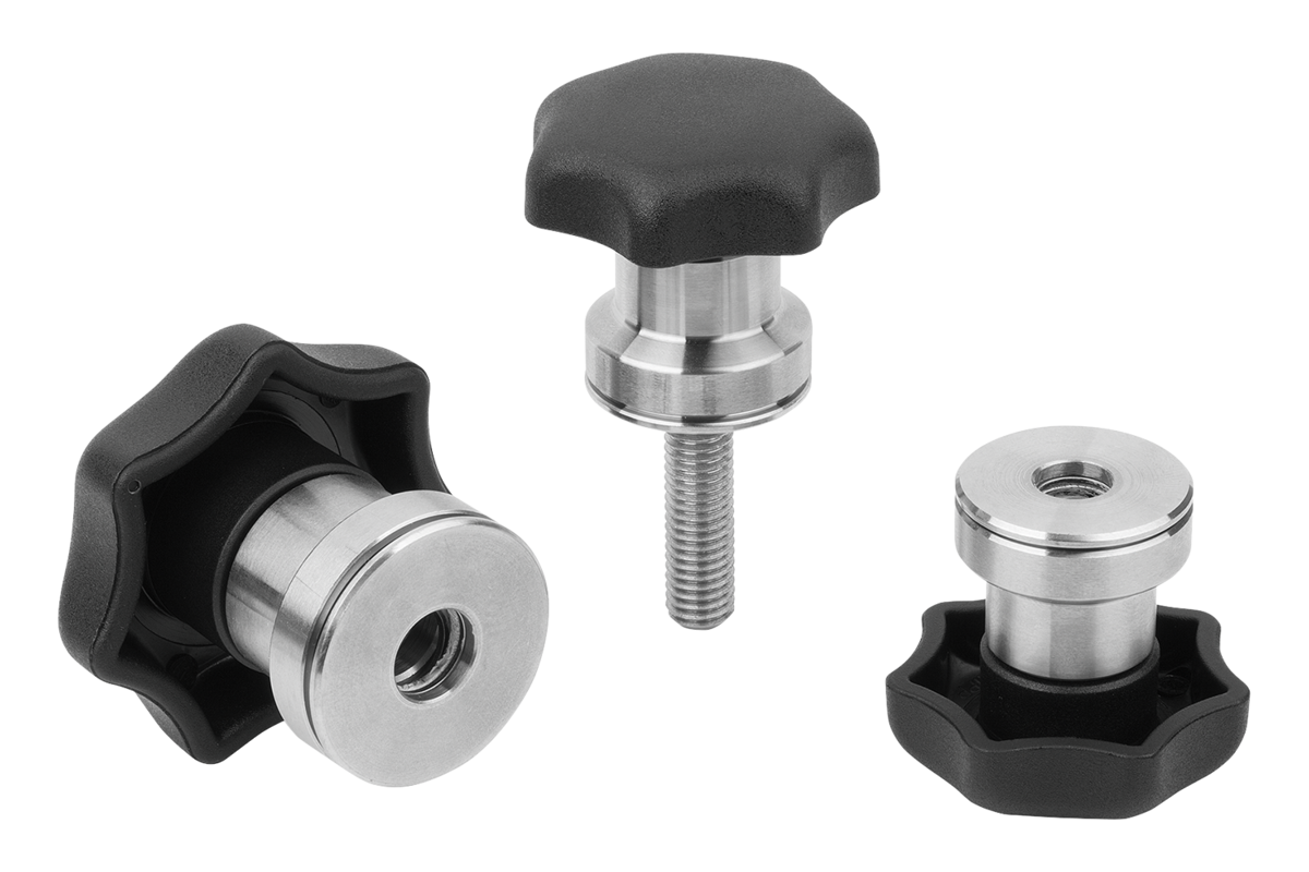 Star grips, plastic, Form K, with clamping force intensifier and tapped bush