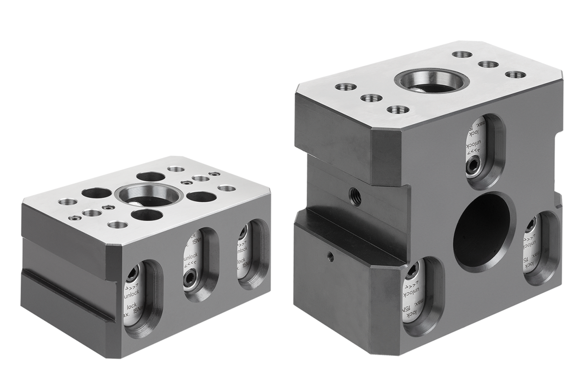 Stała wielkość sworzni mocujących w modułowym 5-osiowym systemie mocowania 80 i zgodność z pneumatycznym systemem mocowania w punkcie zerowym zapewniają różnorodne możliwości zastosowań.